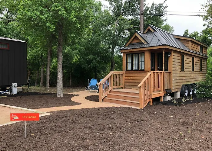 Sumérgete en una experiencia única en Austin's Original Tiny Home Hotel, donde la comodidad y la creatividad se fusionan. Este encantador refugio se encuentra a solo 16 km de Zilker Zephyr Miniature, ideal para disfrutar de un divertido paseo en un tren en miniatura, perfecto para toda la familia. Además, el hotel está a 10 km de Austin-Bergstrom International, facilitando así tu llegada y salida. La ubicación de Austin's Original Tiny Home Hotel te permite explorar fácilmente las maravillas de Austin y sus alrededores. Ya sea que desees visitar parques, museos o disfrutar de la vibrante vida nocturna de la ciudad, todo está al alcance de tu mano.